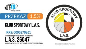 Zachęcamy do przekazania 1,5% podatku na rozwój naszego klubu i bezpośrednie wsparcie zawodników trenujących w KS L.A.S.